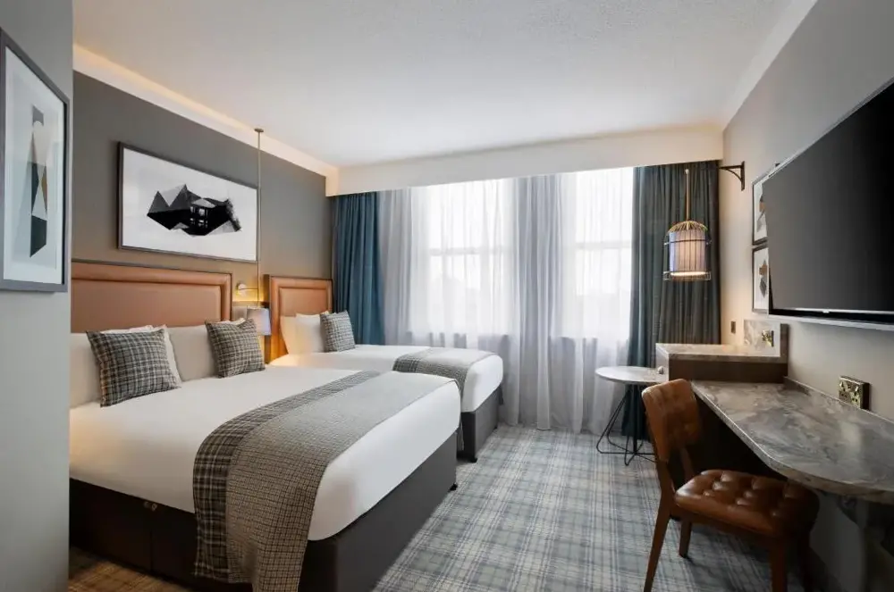 Más información sobre Virgin Hotels EdinburghThe Scotsman Hotel en el corazón del casco antiguo de Edimburgo ofrece alojamiento funcional con servicios esenciales como conexión WiFi gratuita y un gimnasio para mantenerse activo durante tu estancia. Las habitaciones incluyen opciones familiares adaptadas a grupos y ascensores que facilitan el acceso entre plantas.