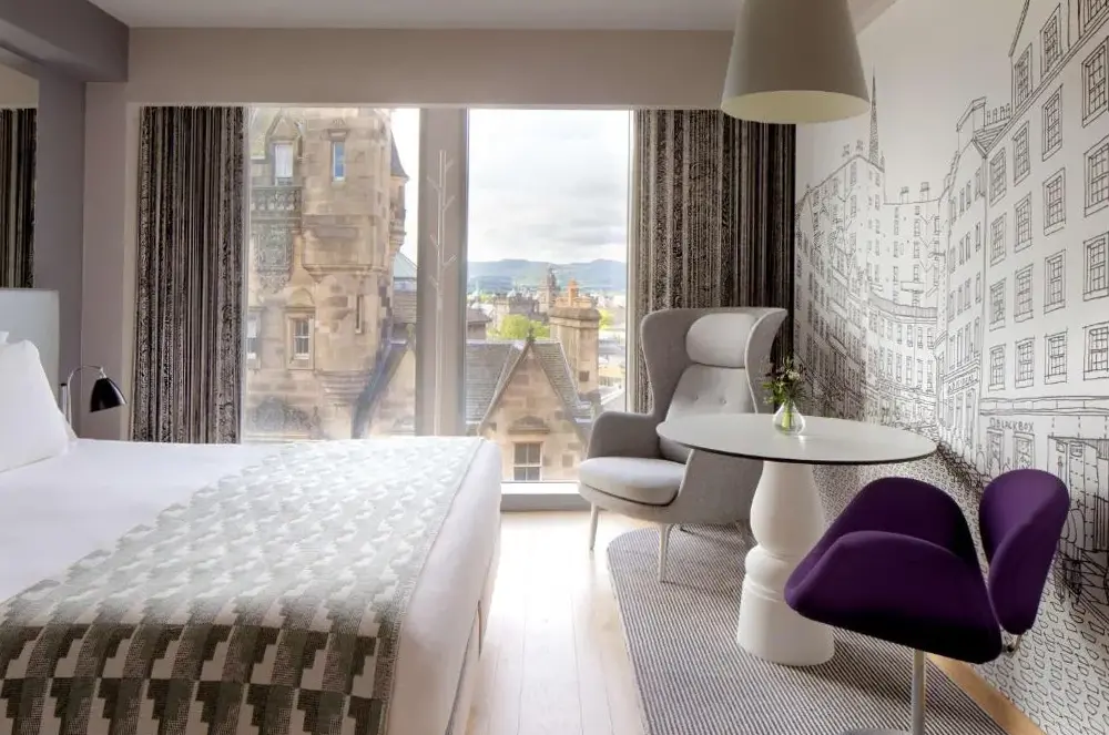 Más información sobre Radisson Blu Hotel, Edinburgh City CentreEl Motel One Edinburgh-Royal, ubicado en el corazón del casco histórico de Edimburgo, ofrece alojamiento funcional con servicios como conexión WiFi gratuita y un bar integrado para relajarse tras explorar la ciudad. Las habitaciones incluyen té o cafetera individual, mientras que el establecimiento garantiza accesibilidad para huéspedes con movilidad reducida y sirve un buen desayuno matutino.